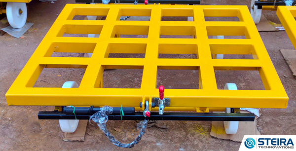 IOCL (Indian Oil Corporation Limited) is an Indian government corporation under the Ministry of Petroleum and Natural Gas. Indian Oil’s business interests overlap the entire hydrocarbon value-chain, including refining, pipeline transportation, marketing of petroleum products, etc. In our acknowledgment to serve the prosperous organization, we have manufactured and delivered 30 trolleys for IOCL Jagatsinghpur, Odisha, for the transport of oil containers. The trolleys can withstand a payload of up to 2 metric tons and are equipped with a handbrake and lever system for ease of operation.